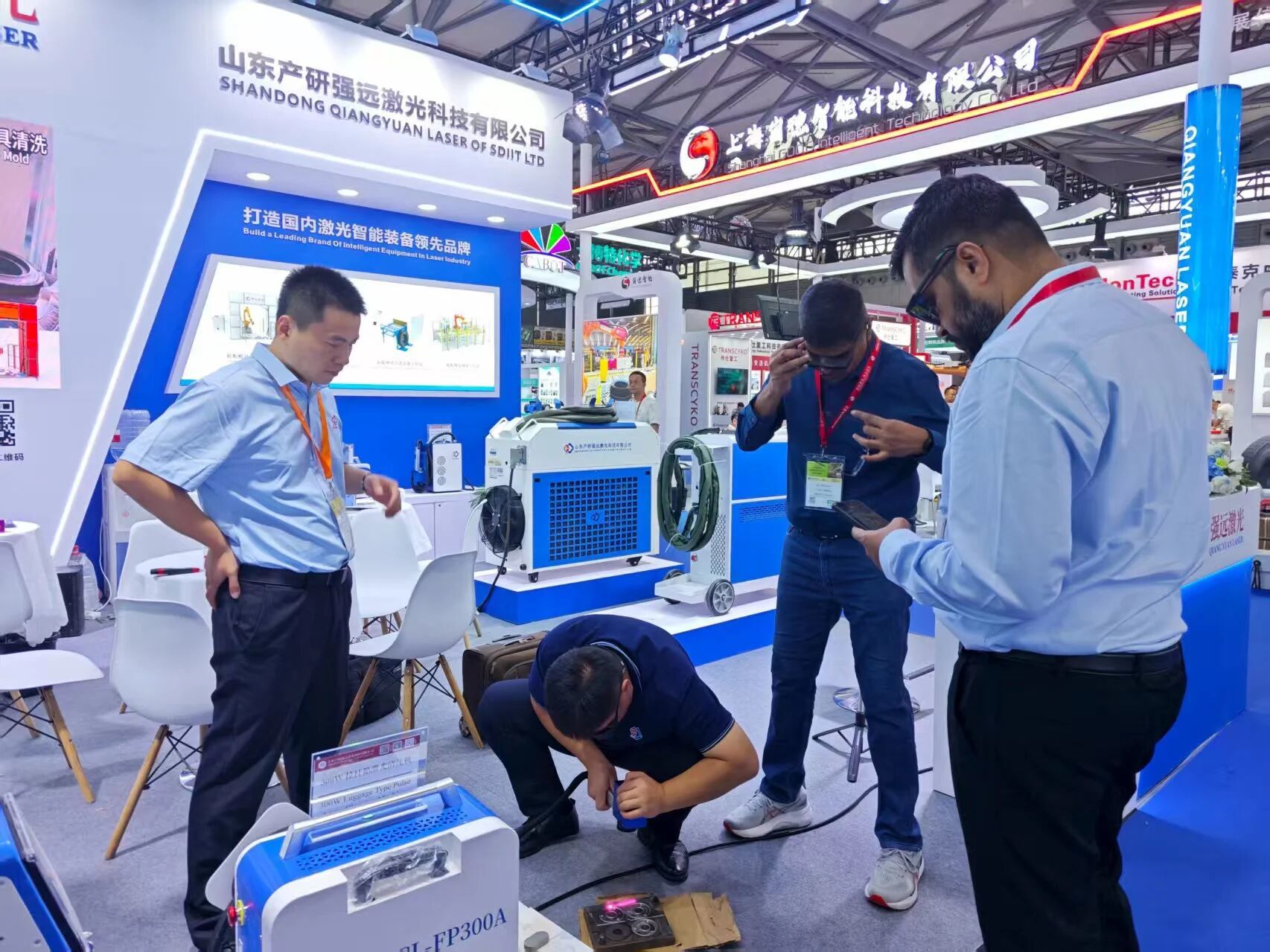 展會期間,強遠激光全方位展示了最新研發的多款高端設備,包括新型拉桿箱激光清洗機、大功率脈沖激光清洗機、風冷連續清洗機、背負式激光清洗機、手提式激光清洗機,以及風冷焊接一體機等多款焊接創新產品,覆蓋了從輕便手持到高效固定的多種工業清洗與焊接應用場景。